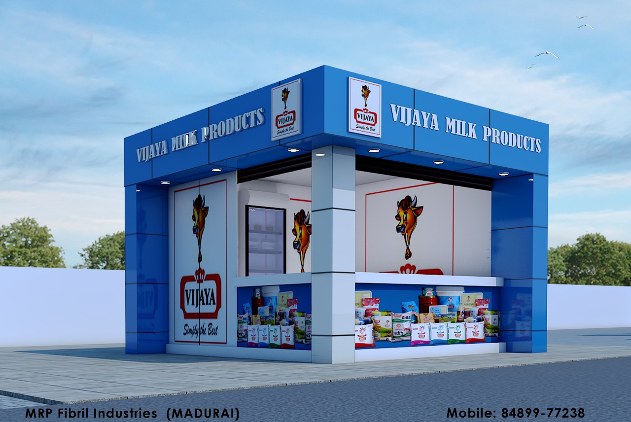 We are one of the KIOSK manufacturers from Tamil Nadu and have executed more than 400+ various models and size of kiosk as Milk Parlor, Coffee shops, Tea shops, Porta cabins, office cabin...